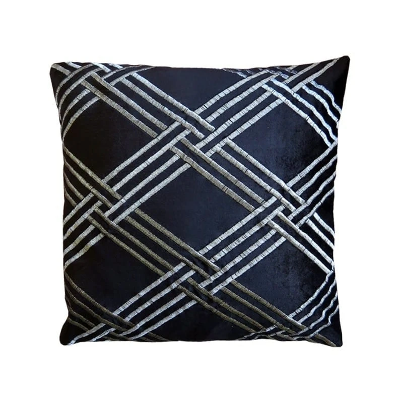 Διακοσμητική μαξιλαροθήκη βελούδινη-βαμβακερή με μεταλλικό κέντημα σε μαύρο χρώμα από την Art Et Lumiere - Διαστάσεις: 45x45εκ.