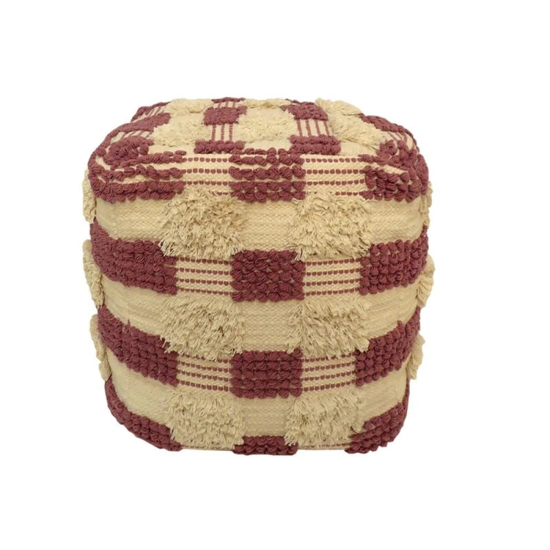 Σκαμπώ 100% βαμβακερό σε εκρού-ροζ χρώμα από την Art Et Lumiere - Διαστάσεις: 45x45x45εκ.
