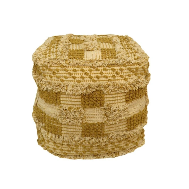Σκαμπώ 100% βαμβακερό σε εκρού-μουσταρδί χρώμα από την Art Et Lumiere - Διαστάσεις: 45x45x45εκ.