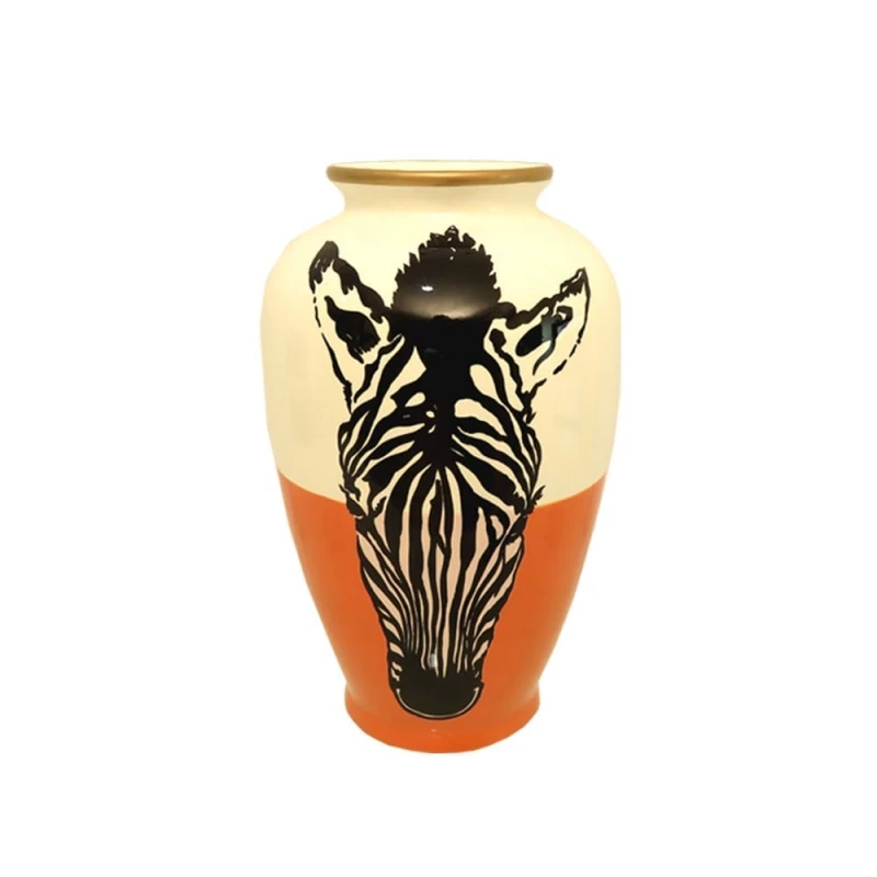 Βάζο κεραμικό σε κοραλί - λευκό - μαύρο χρώμα από την Art Et Lumiere - Διαστάσεις: 21x39εκ.