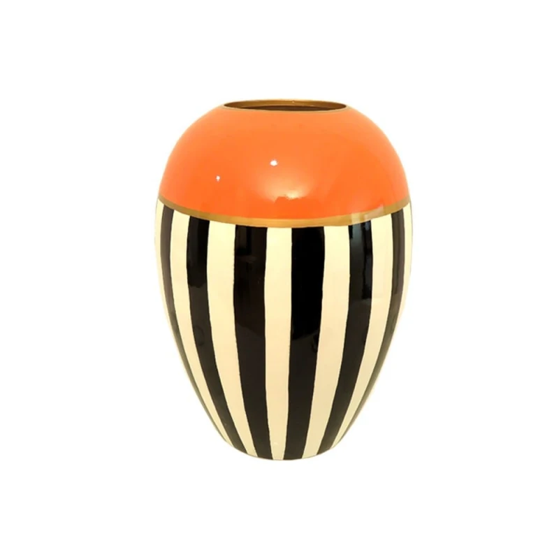 Βάζο κεραμικό σε κοραλί - λευκό - μαύρο χρώμα από την Art Et Lumiere - Διαστάσεις: 23x32εκ.