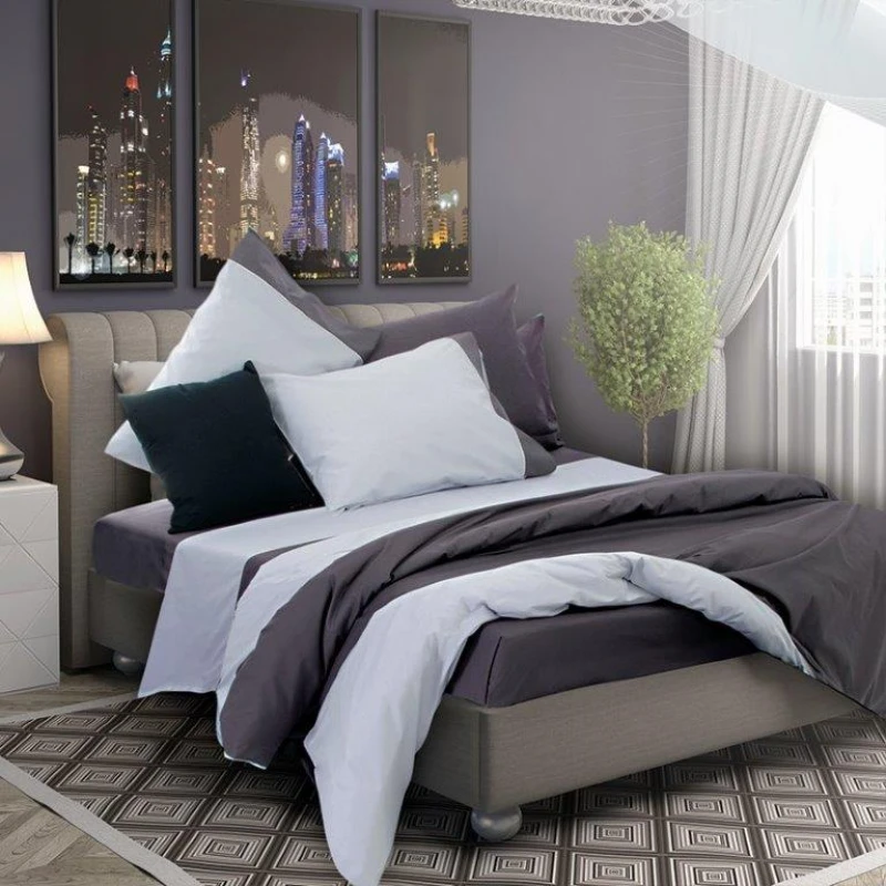Κουβερλί 2 όψεων υπέρδιπλο Simi Carbon, 100% βαμβάκι, 144 κλωστών και γέμιση silicon polyester fiber, σε ανθρακί - εκρού χρώμα, από την Sb home - Διαστάσεις: 225x240εκ.