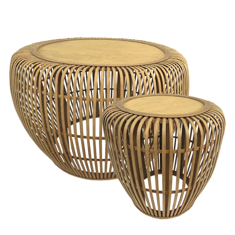 Τραπεζάκια bamboo σετ 2τμχ σε φυσικό μπεζ χρώμα από την Art Et Lumiere - Διατάσεις μικρού: 43x46εκ., Διαστάσεις μεγάλου: 75x46,5εκ.