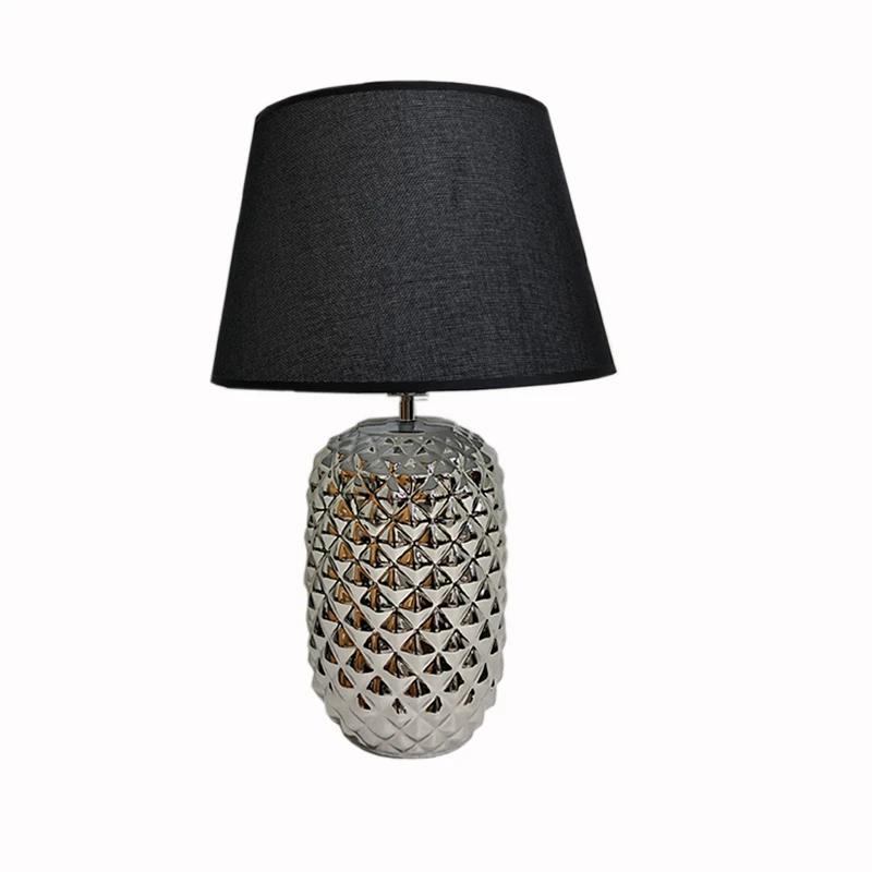 Φωτιστικό επιτραπέζιο κεραμικό σε ασημί χρώμα με μαύρο καπέλο από την Art Et Lumiere - Διαστάσεις: 35x55εκ.