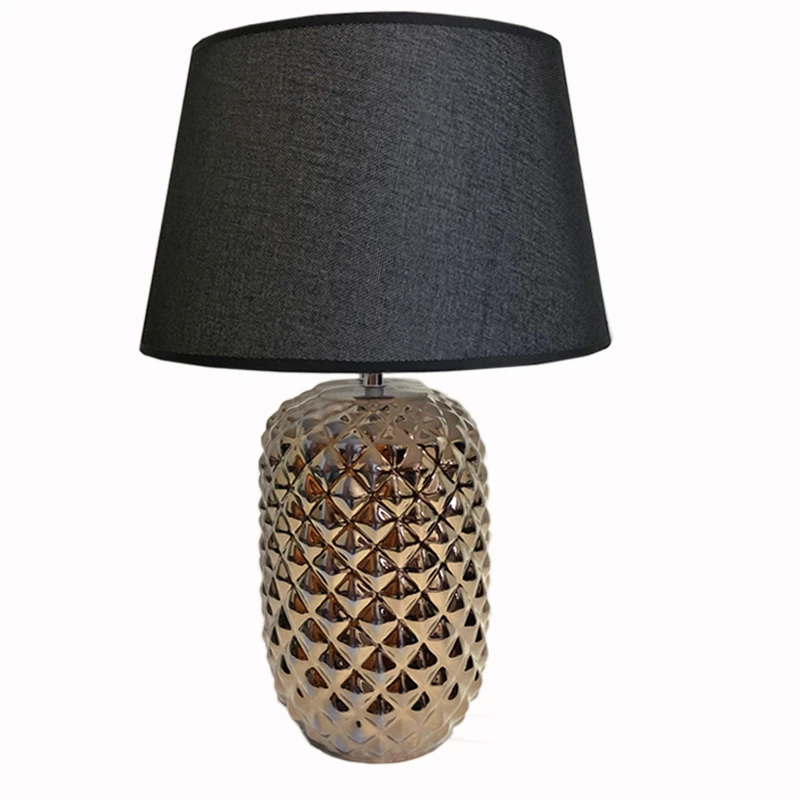 Φωτιστικό επιτραπέζιο κεραμικό σε μπρονζέ χρώμα με μαύρο καπέλο από την Art Et Lumiere - Διαστάσεις: 35x55εκ.