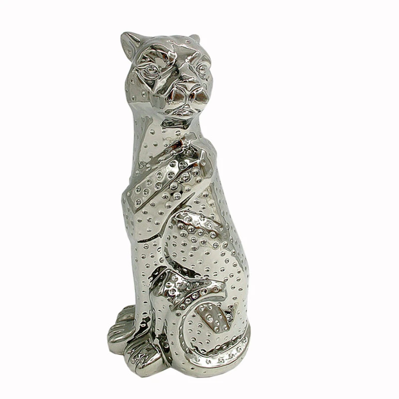 Διακοσμητική τίγρης κεραμική σε ασημί χρώμα από την Art Et Lumiere - Διαστάσεις: 13,5x11,5x30,5εκ.