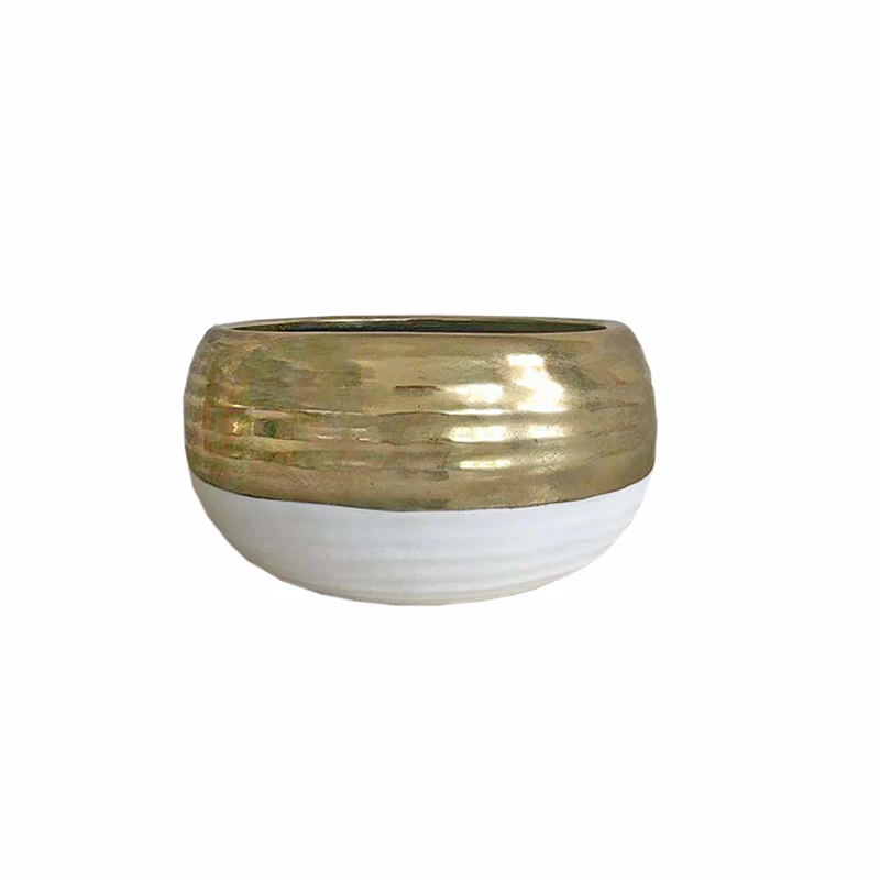 Διακοσμητικό μπωλ κεραμικό σε χρυσό-λευκό χρώμα από την Art Et Lumiere - Διαστάσεις: 23,5x12εκ.