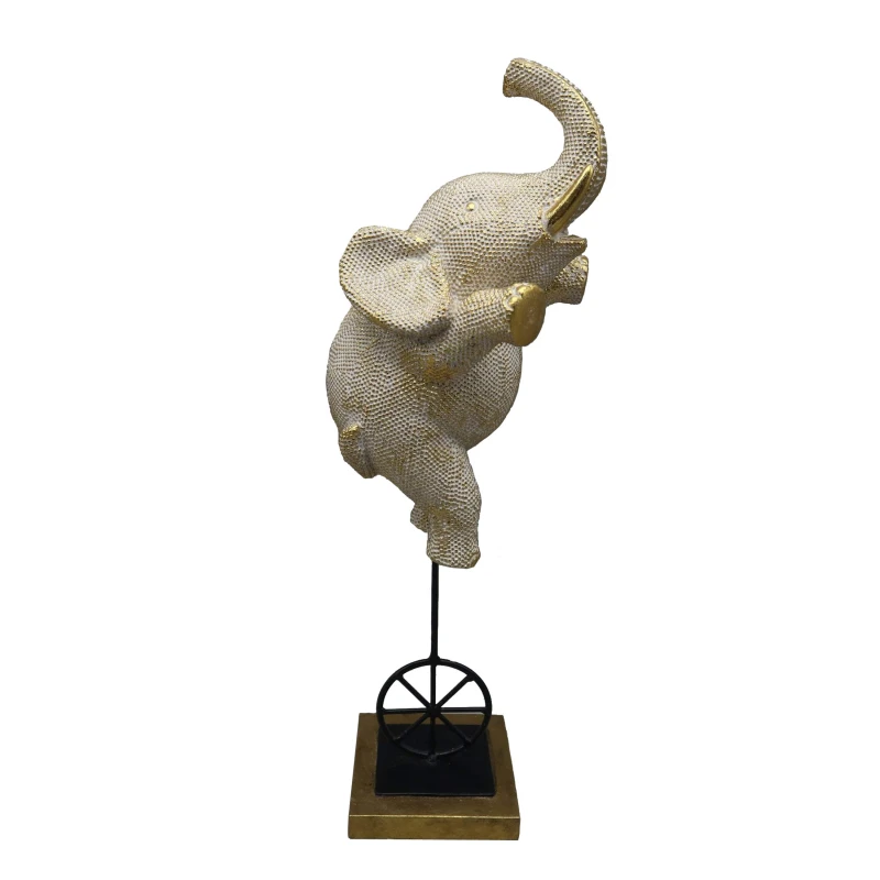 Διακοσμητικός επιτραπέζιος ελέφαντας polyresin πάνω σε ρόδα σε χρυσό χρώμα από την ESPIEL - Διαστάσεις: 15,3x15,1x42,4εκ.