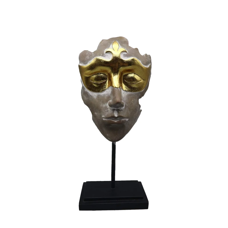 Διακοσμητικό επιτραπέζιο προσωπείο polyresin με χρυσή μάσκα από την ESPIEL - Διαστάσεις: 12,2x8,2x29εκ.