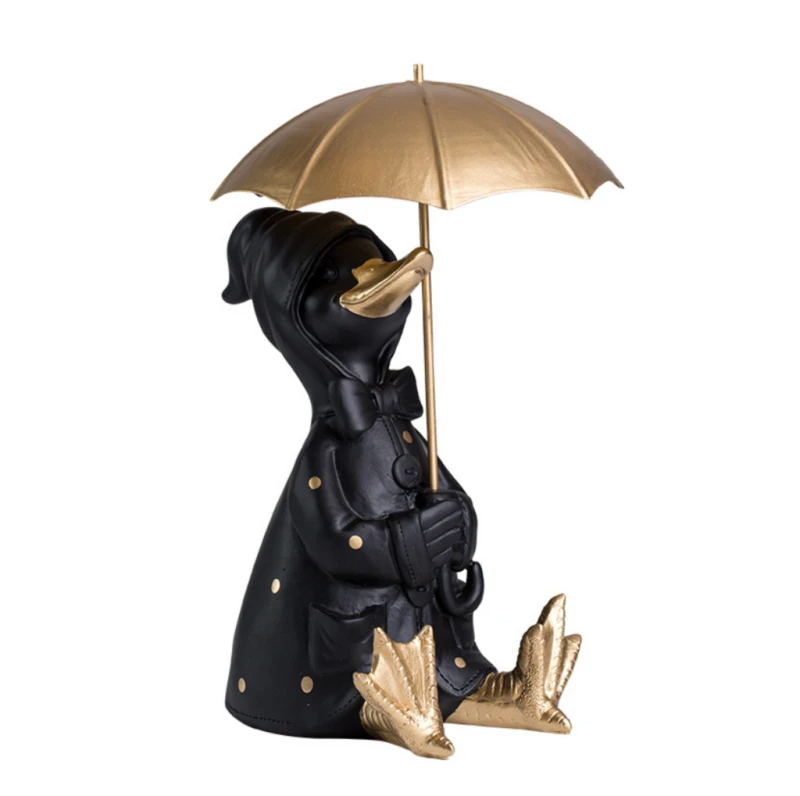 Διακοσμητική επιτραπέζια polyresin πάπια σε μαύρο-χρυσό χρώμα από την ESPIEL - Διαστάσεις: 17x18,5x26εκ.