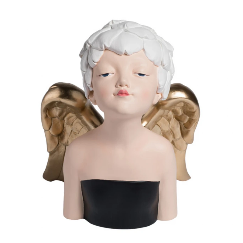 Διακοσμητική επιτραπέζια polyresin νεράιδα σε μαύρο χρώμα με χρυσά φτερά της σειράς Ladies από την ESPIEL - Διαστάσεις: 21x17x28εκ.