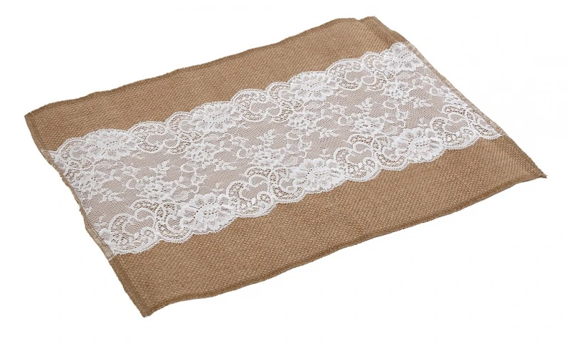 Σουπλά jute (γιούτα) σε μπεζ χρώμα με λευκή δαντέλα από την ESPIEL - Διαστάσεις: 45x30εκ. (πλύσιμο στο χέρι) - Η ελάχιστη ποσότητα αγοράς για αυτό το προϊόν είναι 6τμχ.