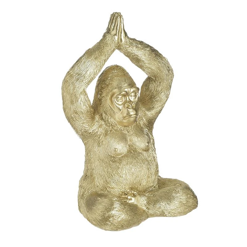Διακοσμητικός επιτραπέζιος γορίλας polyresin σε χρυσό χρώμα από την inart - Διαστάσεις: 13x10x21εκ.