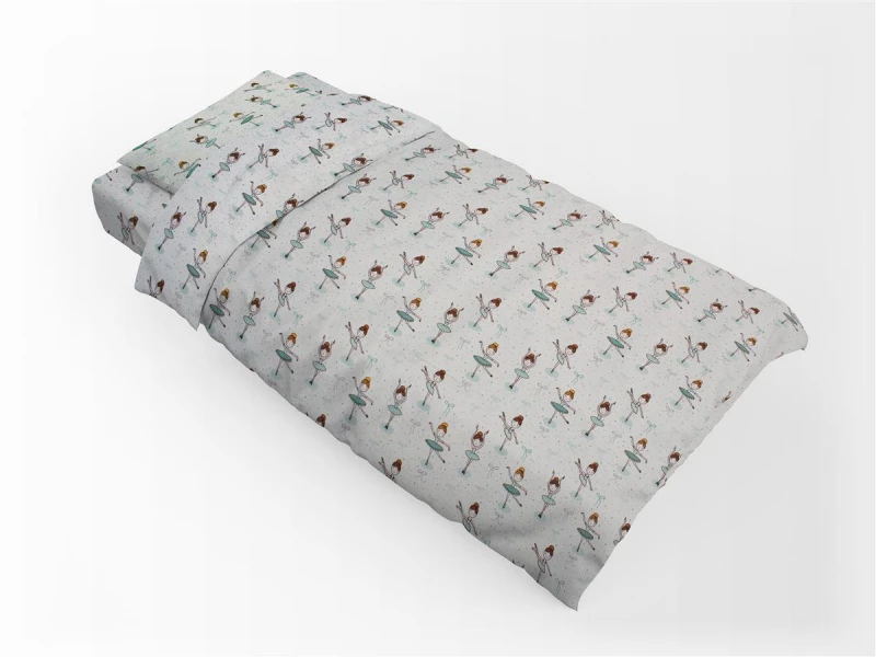 Παπλωματοθήκη με φερμουάρ, μονή, εμπριμέ, 100% βαμβακερή φανέλα, 144 κλωστών με σχέδιο μπαλαρίνα σε πράσινο χρώμα από την DimCol - Διαστάσεις: 160x240εκ.