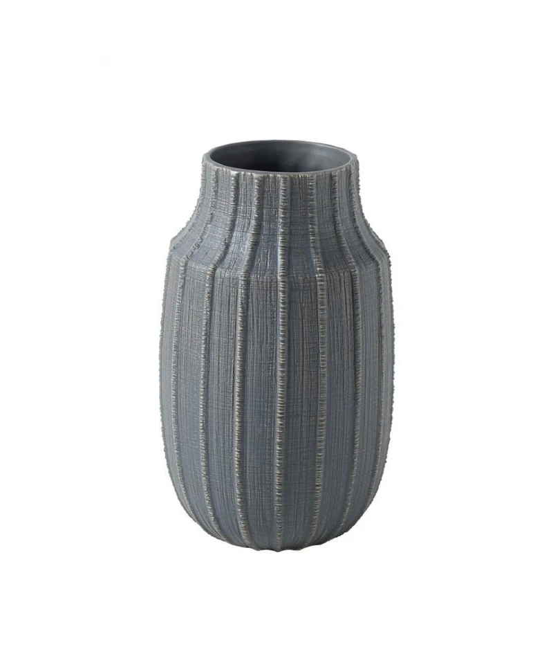 Βάζο πορσελάνης σε ματ γκρι χρώμα με ραβδώσεις από την ESPIEL - Διαστάσεις: 17x29,5εκ.