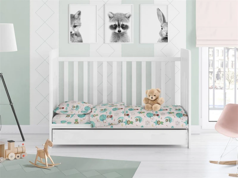 Πάπλωμα κούνιας με γέμιση βάτα αντιαλλεργική 300 gsm, εμπριμέ, 100% βαμβακερό, 144 κλωστών σε πράσινο χρώμα από την DimCol - Διαστάσεις: 120x160εκ.