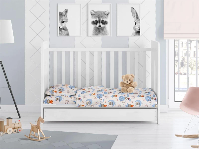 Σεντόνι κούνιας με λάστιχο, μεμονωμένο, 100% βαμβακερό, εμπριμέ, 144 κλωστών σε γαλάζιο χρώμα από την DimCol - Διαστάσεις: 70x140+15εκ.