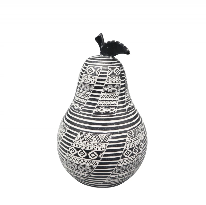 Διακοσμητικό επιτραπέζιο αχλάδι polyresin σε μαύρο - λευκό χρώμα από την ESPIEL - Διαστάσεις: 14x20,5εκ.