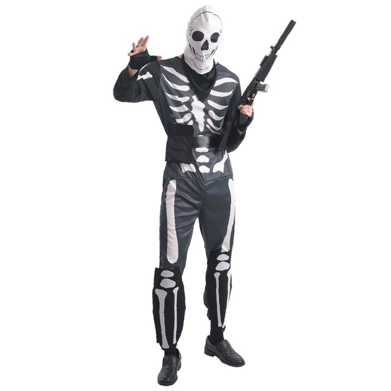 Στολή παιδική skeleton fighter. Η συσκευασία περιλαμβάνει: ολόσωμη φόρμα, κουκούλα, φουλάρι, ζώνη γάντια και επικαλαμίδες. ΔΕΝ περιλαμβάνει το όπλο ***Παρακαλώ πολύ αναγράψτε στα σχόλια της παραγγελίας σας το διαθέσιμο μέγεθος που επιθυμείτε.