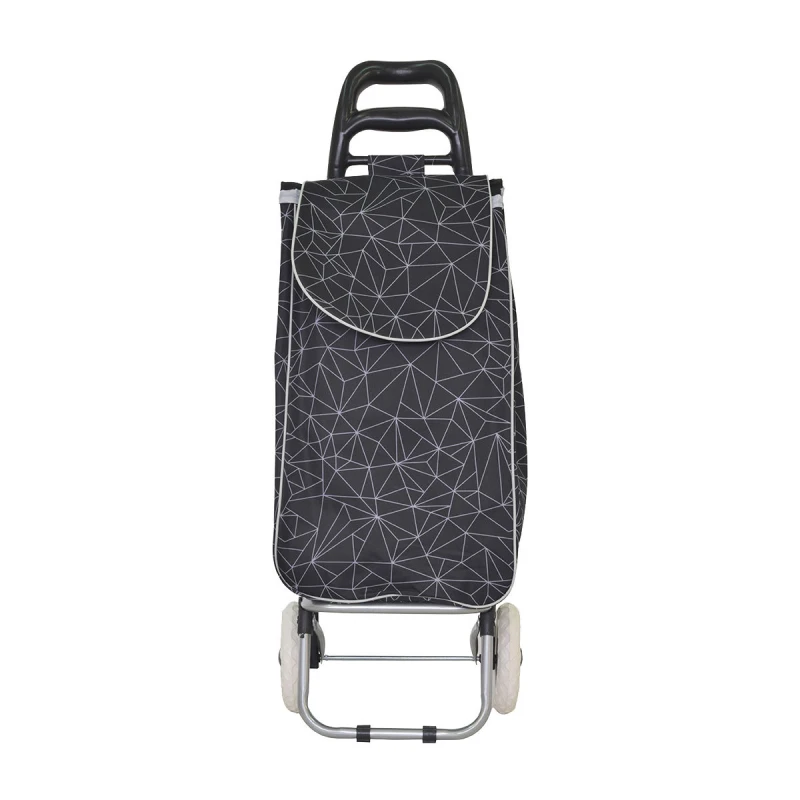 Καρότσι λαΐκής υφασμάτινο polyester με δύο ρόδες, μεταλλικό σκελετό και εργονομική λαβη, σε μαύρο χρώμα της σειράς lux από την estia - Διαστάσεις: 35,5x22x95,7εκ. - Χωρητικότητα: 36lt
