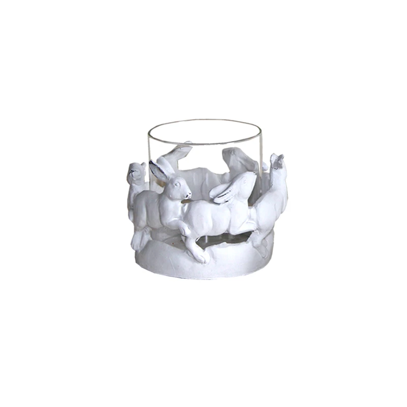 Κηροπήγιο κεραμικό με σχέδιο λαγούς σε λευκό χρώμα από την Art Et Lumiere - Διαστάσεις: 10,5x9,5εκ.