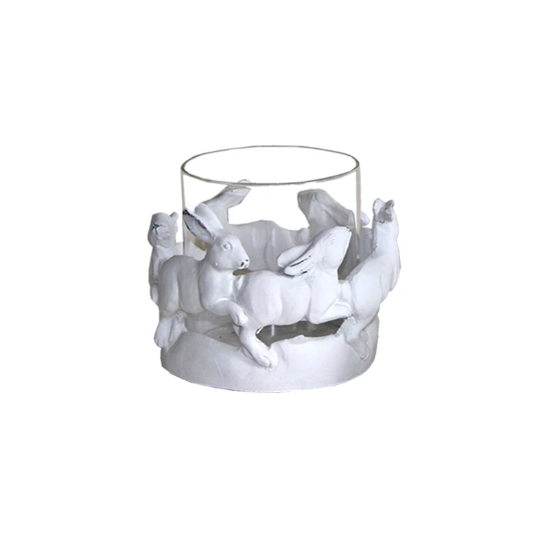 Κηροπήγιο κεραμικό με σχέδιο λαγούς σε λευκό χρώμα από την Art Et Lumiere - Διαστάσεις: 14x11,5εκ.