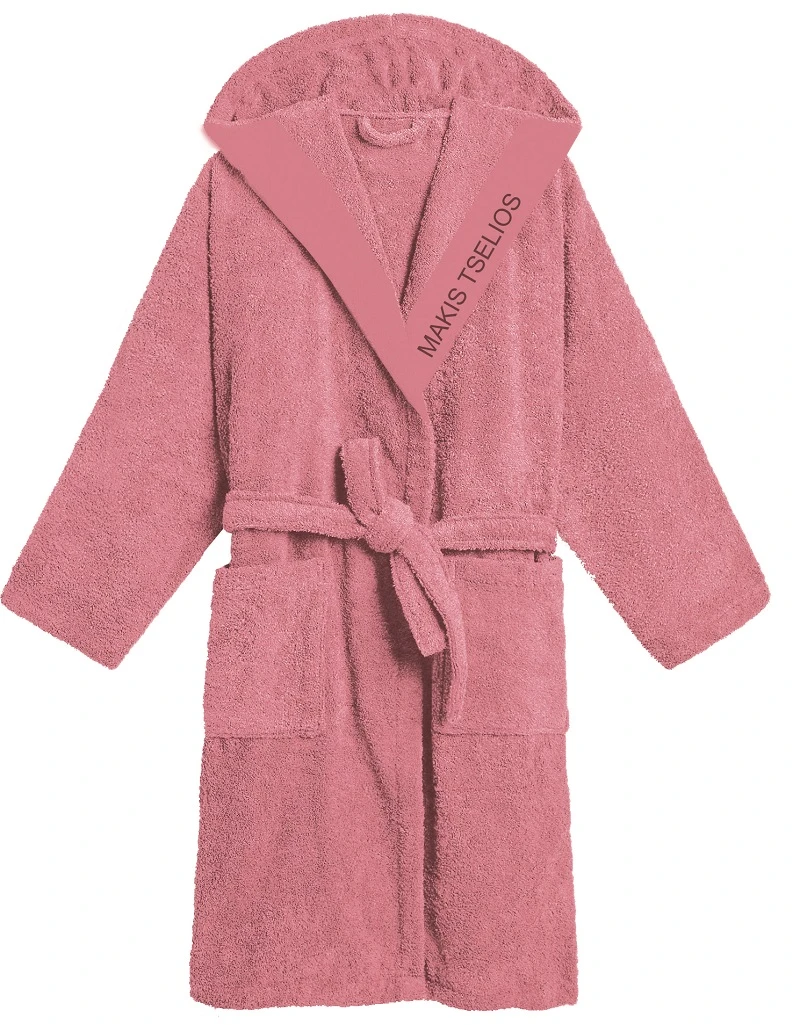Μπουρνούζι Ενηλίκων Με Κουκούλα Βαμβακερό Large West Pink Makis Tselios