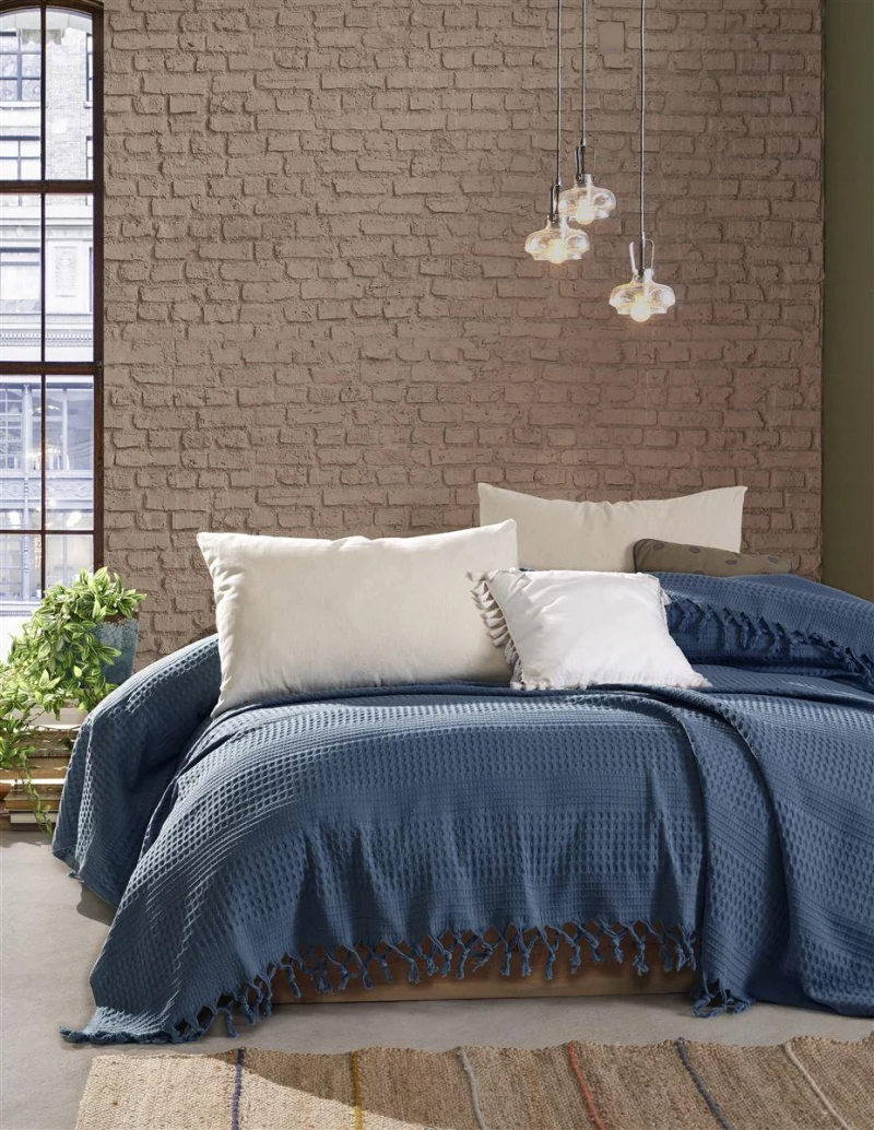 Κουβέρτα Πικέ Βαμβακερή Υπέρδιπλη 220x240εκ. Dobby Petrol DimCol