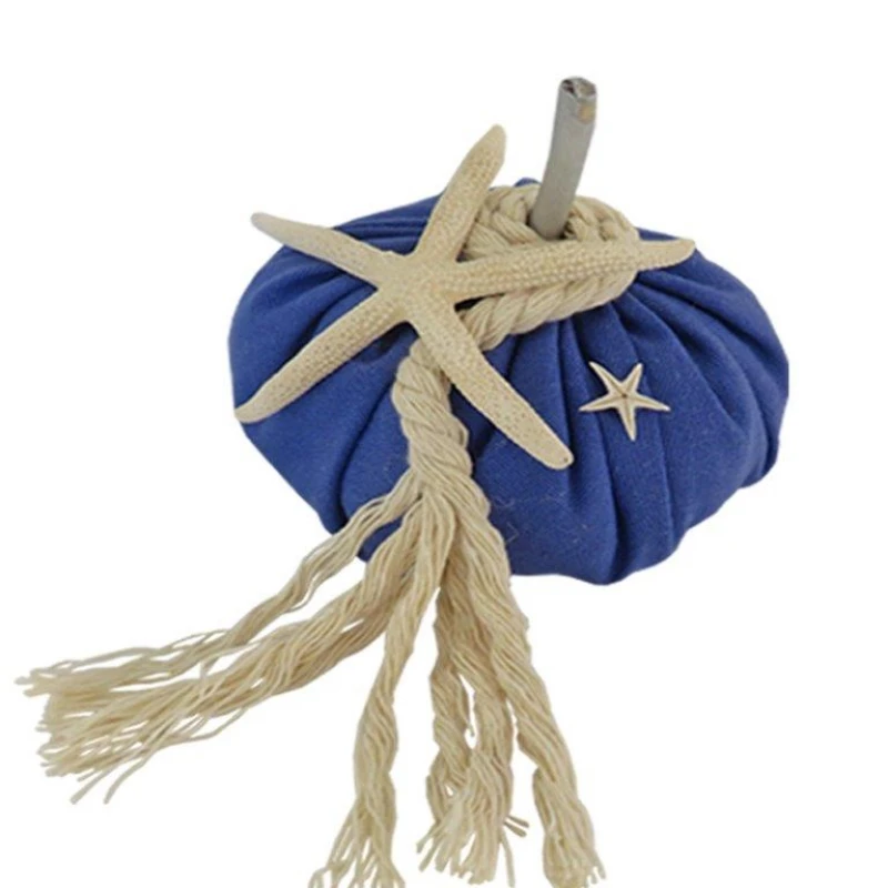 Διακοσμητική επιτραπέζια κολοκύθα λινή σε μπλε χρώμα με εκρού καλοκαιρινά σχέδια από την Art Et Lumiere - Διαστάσεις: 22εκ.