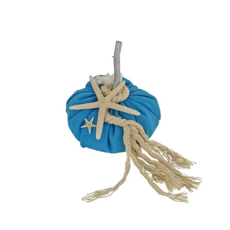 Διακοσμητική επιτραπέζια κολοκύθα λινή σε τυρκουάζ χρώμα με εκρού καλοκαιρινά σχέδια από την Art Et Lumiere - Διαστάσεις: 12εκ.