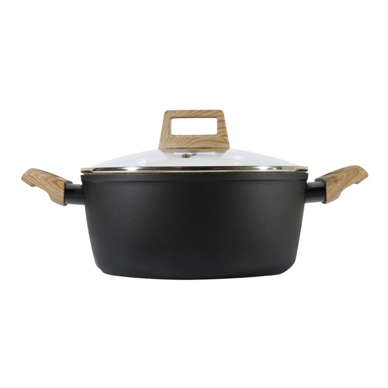 Κατσαρόλα με σώμα από πρεσσαριστό αλουμίνιο, εργονομική και αντιολισθητική λαβή, αντικολλητική επίστρωση και πυράντοχο γυάλινο καπάκι της σειράς earth από την estia - Διαστάσεις: 28εκ. - Χωρητικότητα: 6,9lt