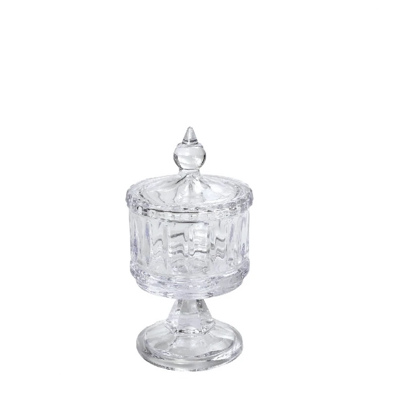 Φοντανιέρα γυάλινη διάφανη, σκαλιστό με καπάκι και πόδι από την ESPIEL - Διαστάσεις: 8x8x13εκ.