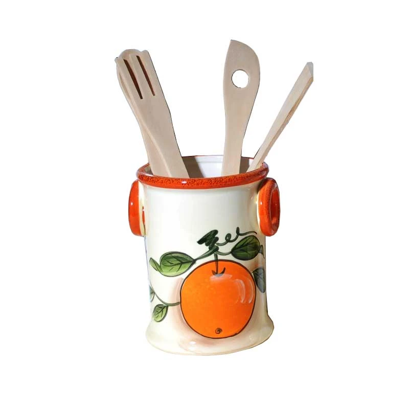 Βάζο κουζίνας με κουτάλες, φαγιάνς σε λευκή απόχρωση με πορτοκαλί λεπτομέρειες της σειράς Agrum από την Royal Art Collection - Διαστάσεις: 11x24εκ.