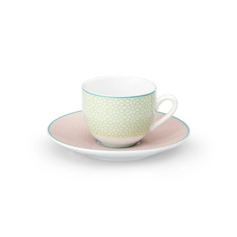 Φλυτζάνι με πιατάκι καφέ πορσελάνης σε ροζ-λαχανί χρώμα της σειράς Siena από την CRYSPO TRIO - Χωρητικότητας: 100ml. - Η ελάχιστη ποσότητα αγοράς για αυτό το προϊόν είναι 6τμχ.