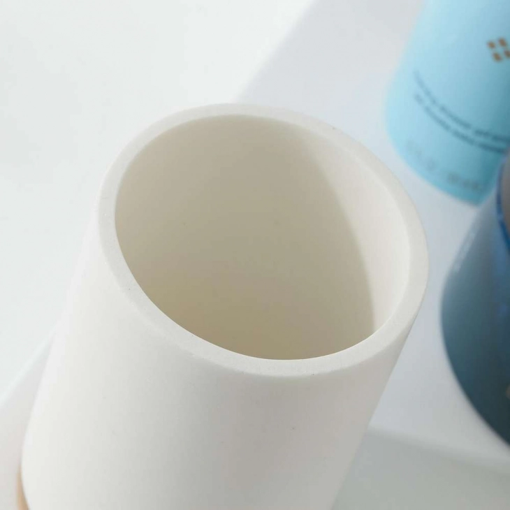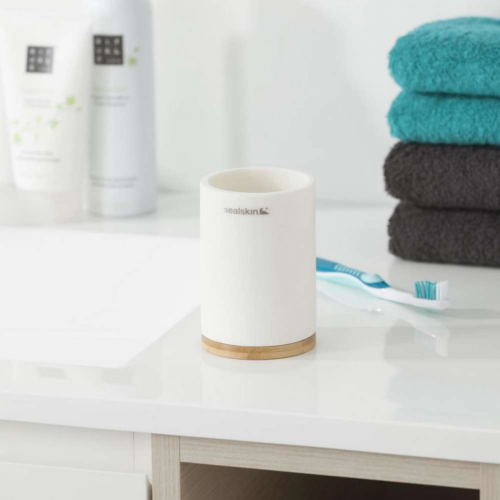 Ο συνδυασμός υλικών είναι η σύγχρονη τάση. Και η σειρά αξεσουάρ μπάνιου Grace της Sealskin από πολυρεζίνη σε συνδυασμό με τόνους μπαμπού ταιριάζει απόλυτα με αυτή την τάση. Το ποτήρι καθαρίζεται εύκολα με ένα νωπό πανί.