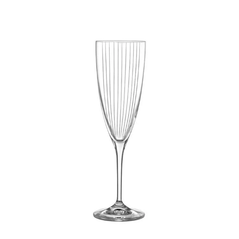 Ποτήρι σαμπάνιας σετ 6τμχ από οικολογικό κρύσταλλο, ταγιαρισμένα στο χέρι με διαμάντι από την Capolavoro - Χωρητικότητας: 220ml.