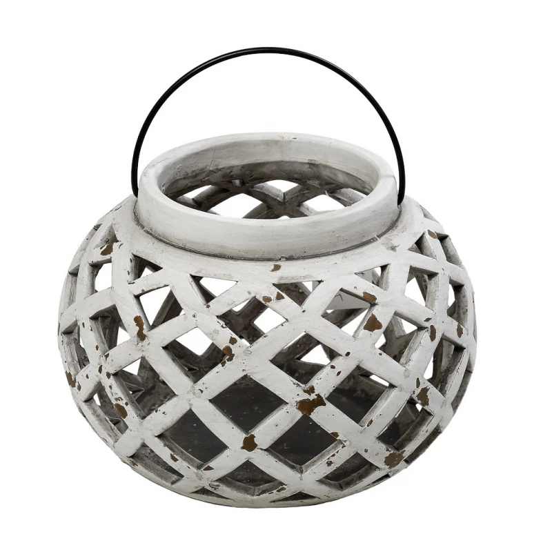Φανάρι κεραμικό, στρογγυλό, σε γκρι-λευκό χρώμα από την ESPIEL - Διαστάσεις: 24x24x17εκ.