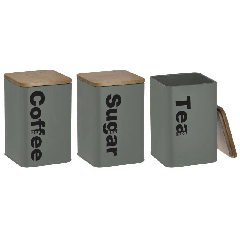 Σετ Δοχείο 3τμχ, καφέ-ζάχαρη-τσαγιού, μεταλλικό-μπαμπού σε βεραμάν-μπεζ χρώμα από την CLICK - Διαστάσεις: 10x10x14εκ.