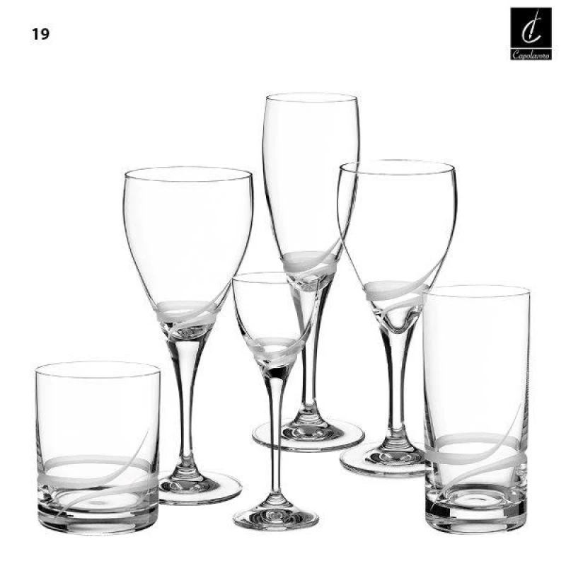 Σετ 36τμχ ποτήρια από οικολογικό κρύσταλλο, ταγιαρισμένα στο χέρι με διαμάντι της σειράς Rona από την Capolavoro - Το σετ περιλαμβάνει: 6 ποτήρια νερού κολωνάτα 360ml., 6 ποτήρια κρασιού 190ml., 6 ποτήρια λικέρ 60ml., 6 ποτήρια σαμπάνιας 230ml., 6 ποτήρια νερού σωλήνα 350ml., 6 ποτήρια ουίσκι 320ml.