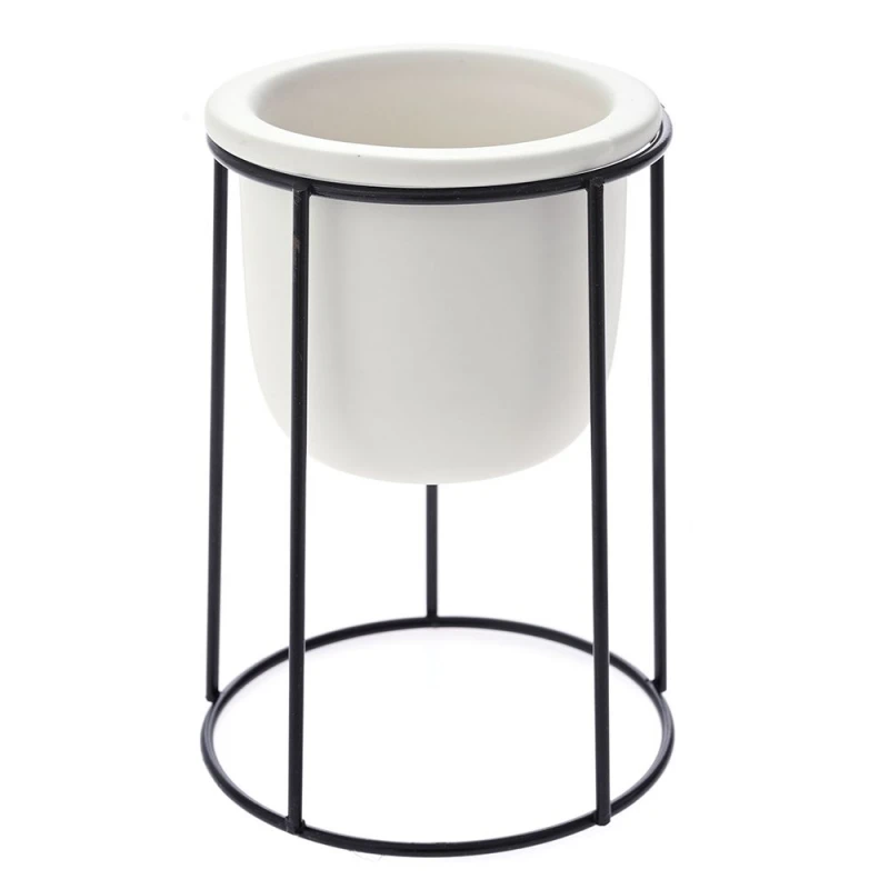 Κασπώ κεραμικό σε λευκό χρώμα, σε μαύρη μεταλλική βάση, από την iliadis - Διαστάσεις: 10,5x10,5x14,5εκ.