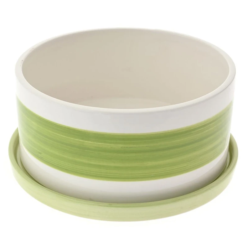 Κασπώ κεραμικό σε πράσινο χρώμα, με πιατάκι, από την iliadis - Διαστάσεις: 20x20x10εκ.