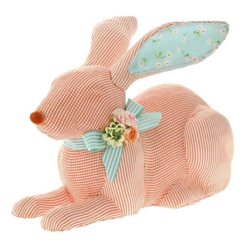 Πασχαλινός διακοσμητικός επιτραπέζιος λαγός καθιστός υφασμάτινος σε σομόν χρώμα από την iliadis - Διαστάσεις: 43x20x26εκ.