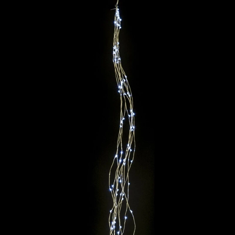 Λαμπάκια 150 microled με ασημί σύρμα χαλκού και λευκό του πάγου φως σε σχήμα καταράκτη. Εχει 10 γραμμές με 15 λαμπάκια η καθεμία ανα 10εκ. Συνολικό μήκος 1,50 μέτρα.
