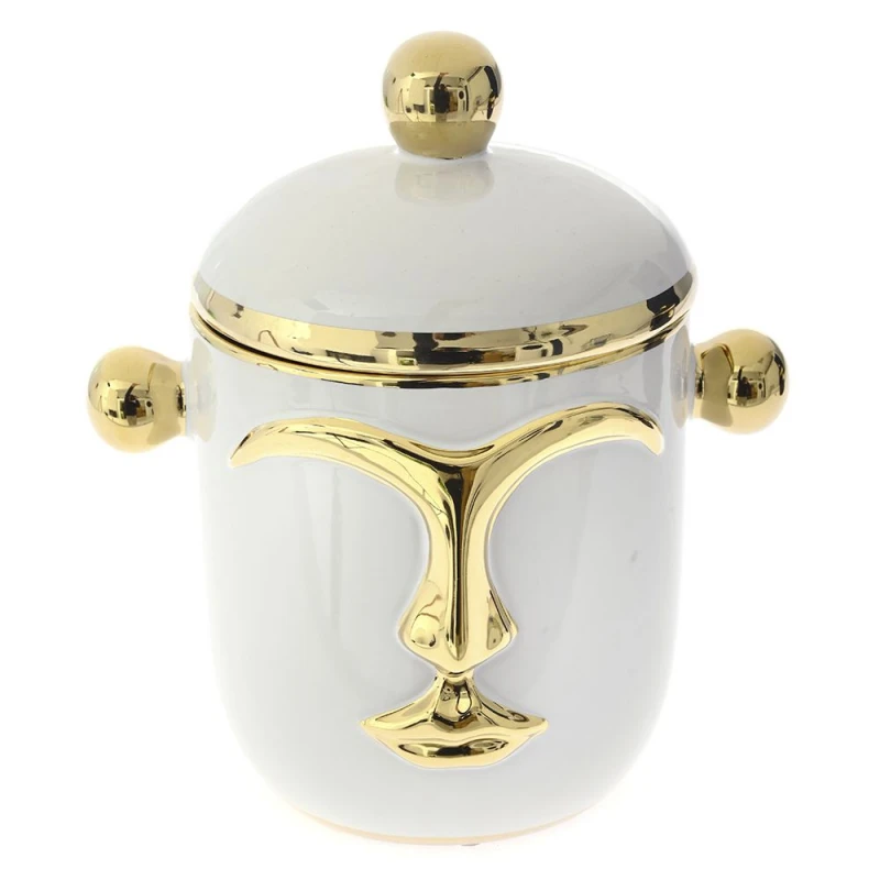 Διακοσμητικό Βάζο Κεραμικό Με Καπάκι Πρόσωπο Λευκό-Χρυσό Iliadis 25x19x28εκ. 77608