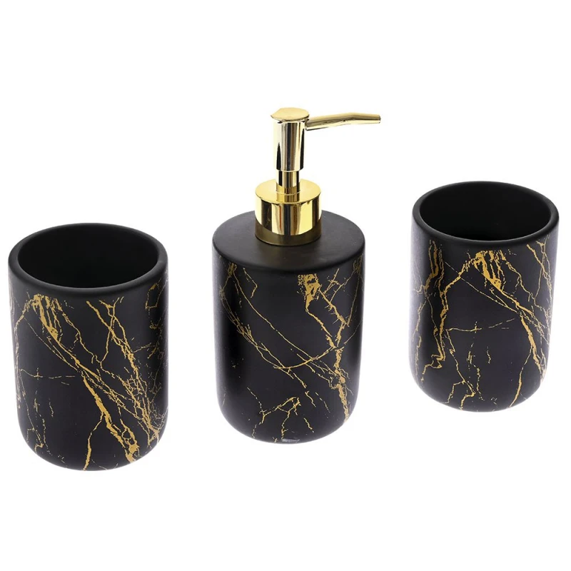 Σετ μπάνιου 3 τεμαχίων, κεραμικό σε μαύρο-χρυσό χρώμα από την iliadis