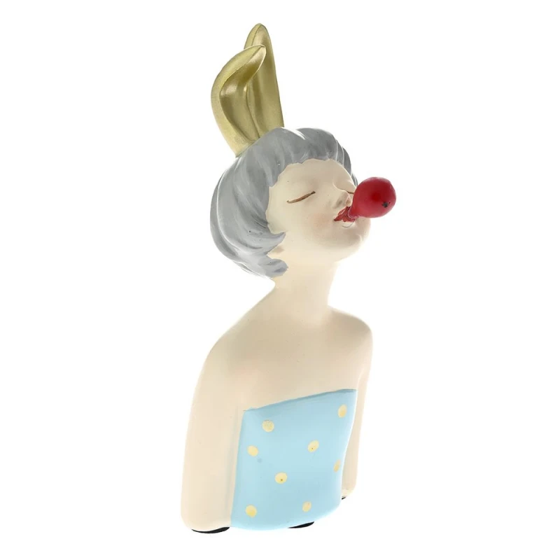 Διακοσμητική επιτραπέζια κοπέλα με τσιχλόφουσκα, polyresin, από την iliadis - Διαστάσεις: 9x9x19εκ.