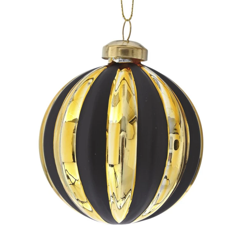 Σετ μπάλες 6τμχ γυάλινες ριγέ σε χρυσό-μαύρο χρώμα από την iliadis - Διαστάσεις: 8εκ.