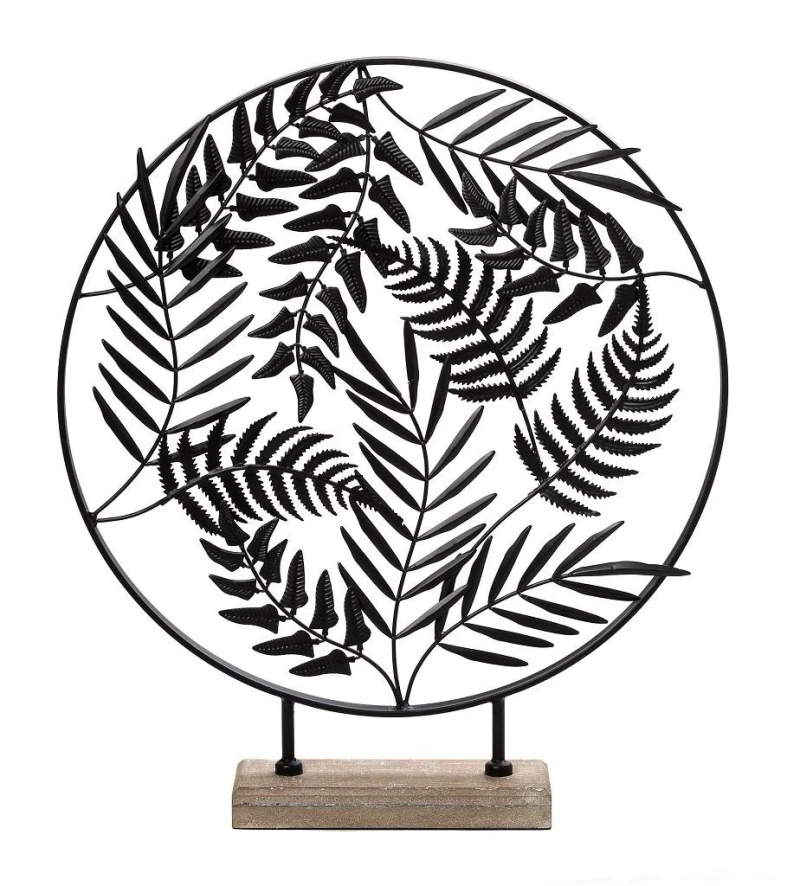 Διακοσμητικό επιτραπέζιο μεταλλικό με σχέδιο μαύρα φύλλα και ξύλινη βάση από την ESPIEL - Διαστάσεις: 51εκ.