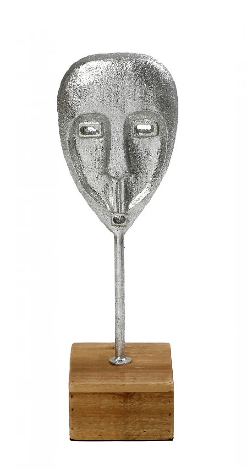 Διακοσμητικό επιτραπέζιο πρόσωπο μεταλλικό-ξύλινο σε ασημί χρώμα από την ESPIEL - Διαστάσεις: 10x10x36εκ.