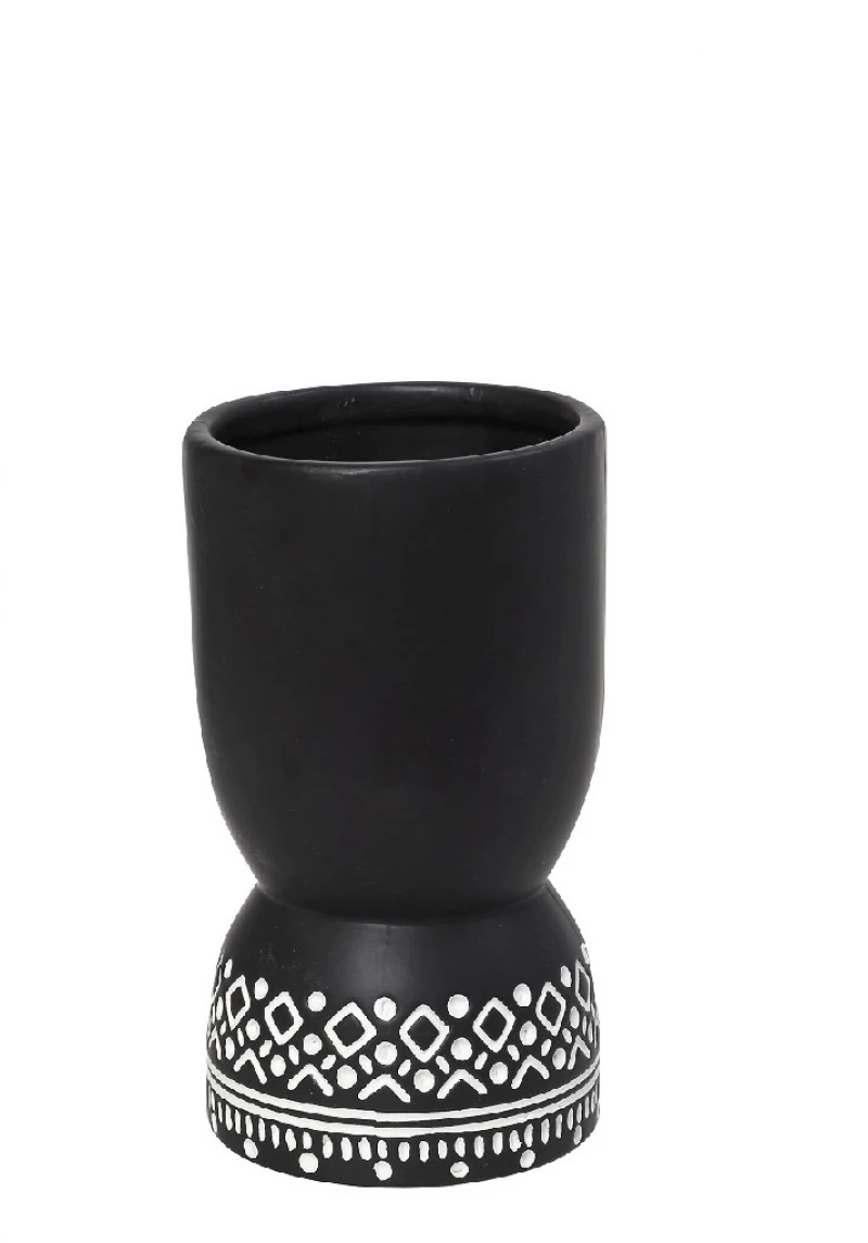 Βάζο κεραμικό σε μαύρο χρώμα με σχέδιο tribal από την ESPIEL - Διαστάσεις: 15x27,5εκ.